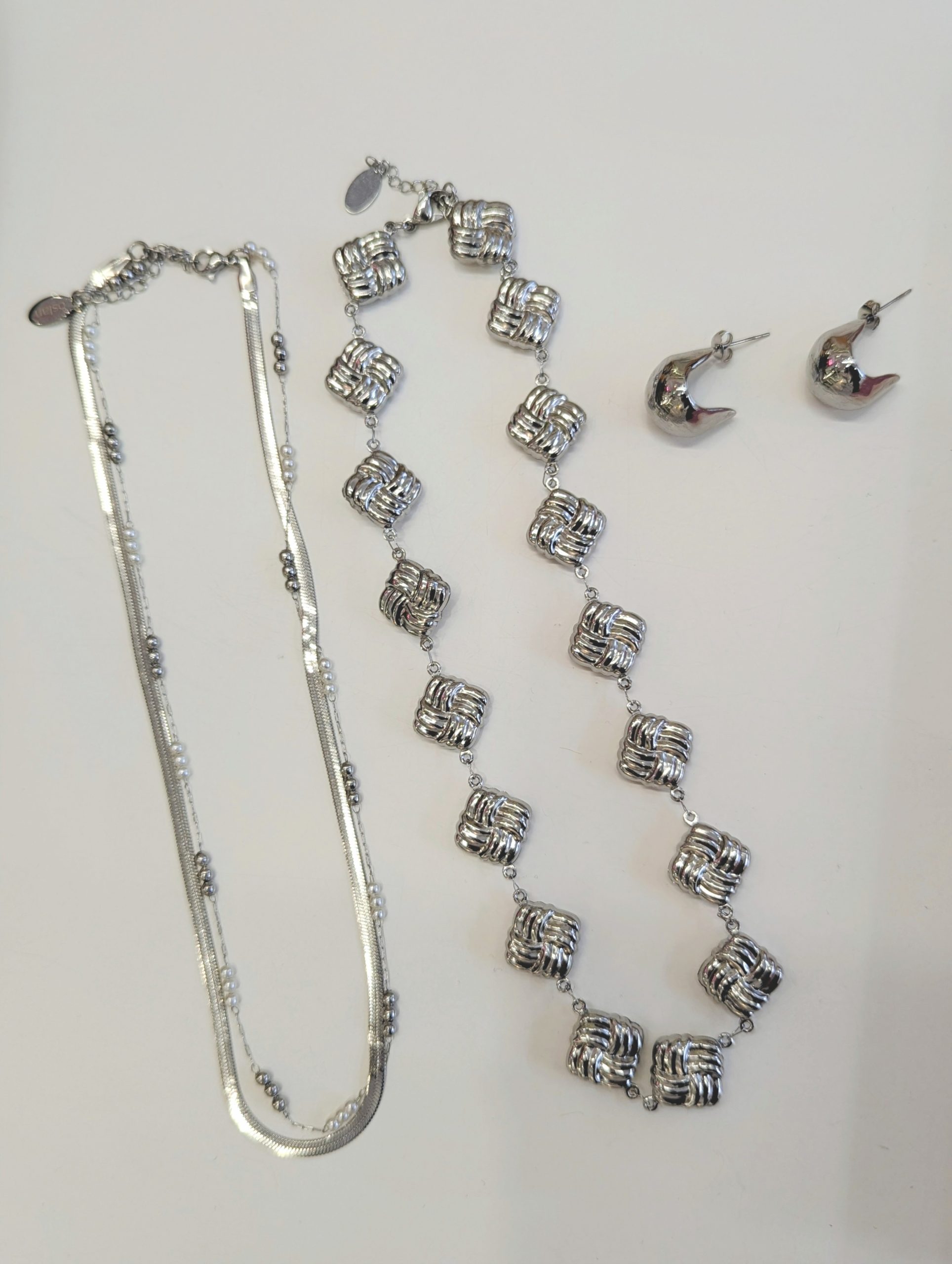 1 κολιέ με ασημί διπλές αλυσίδες και περλίτσες