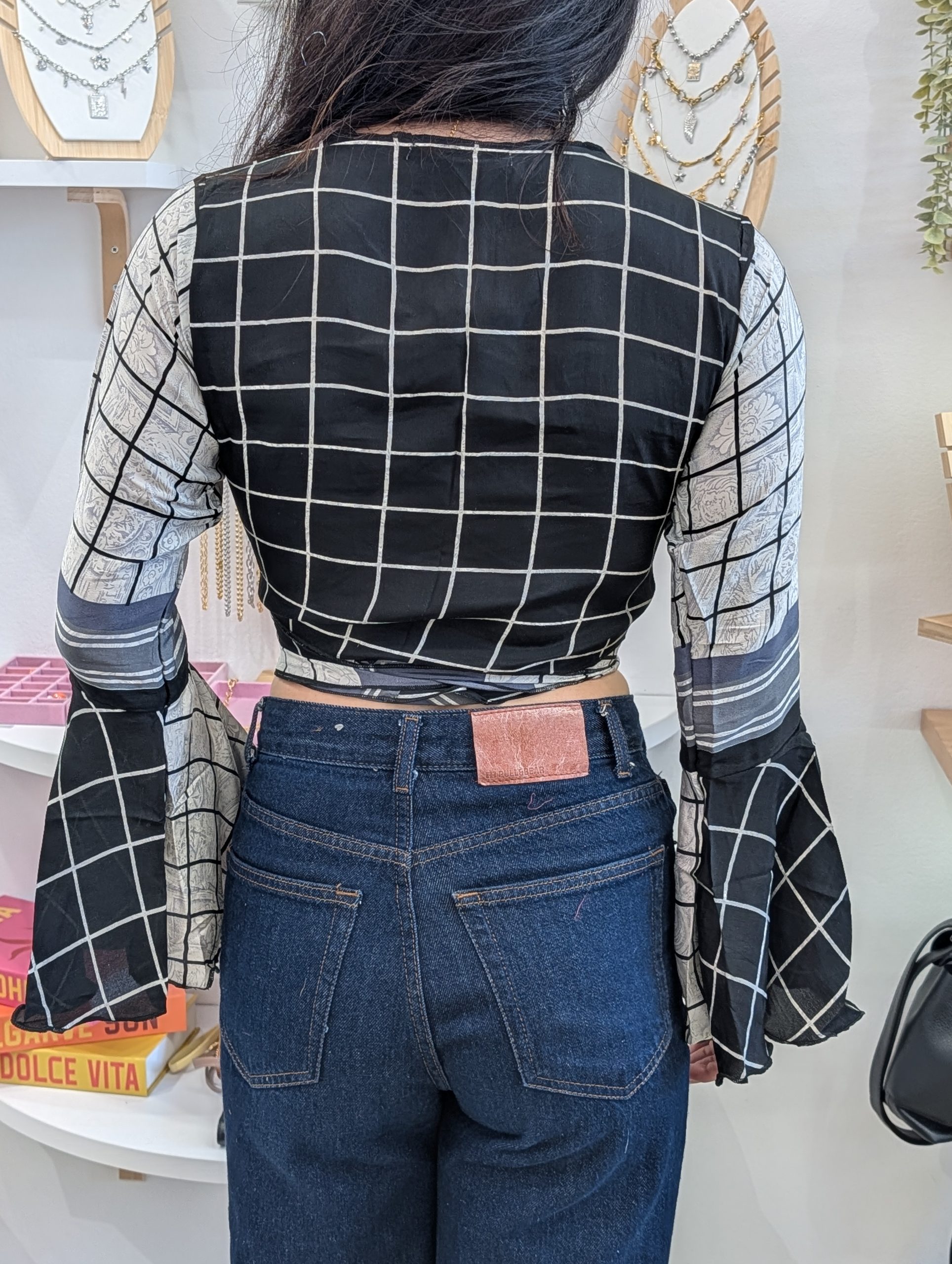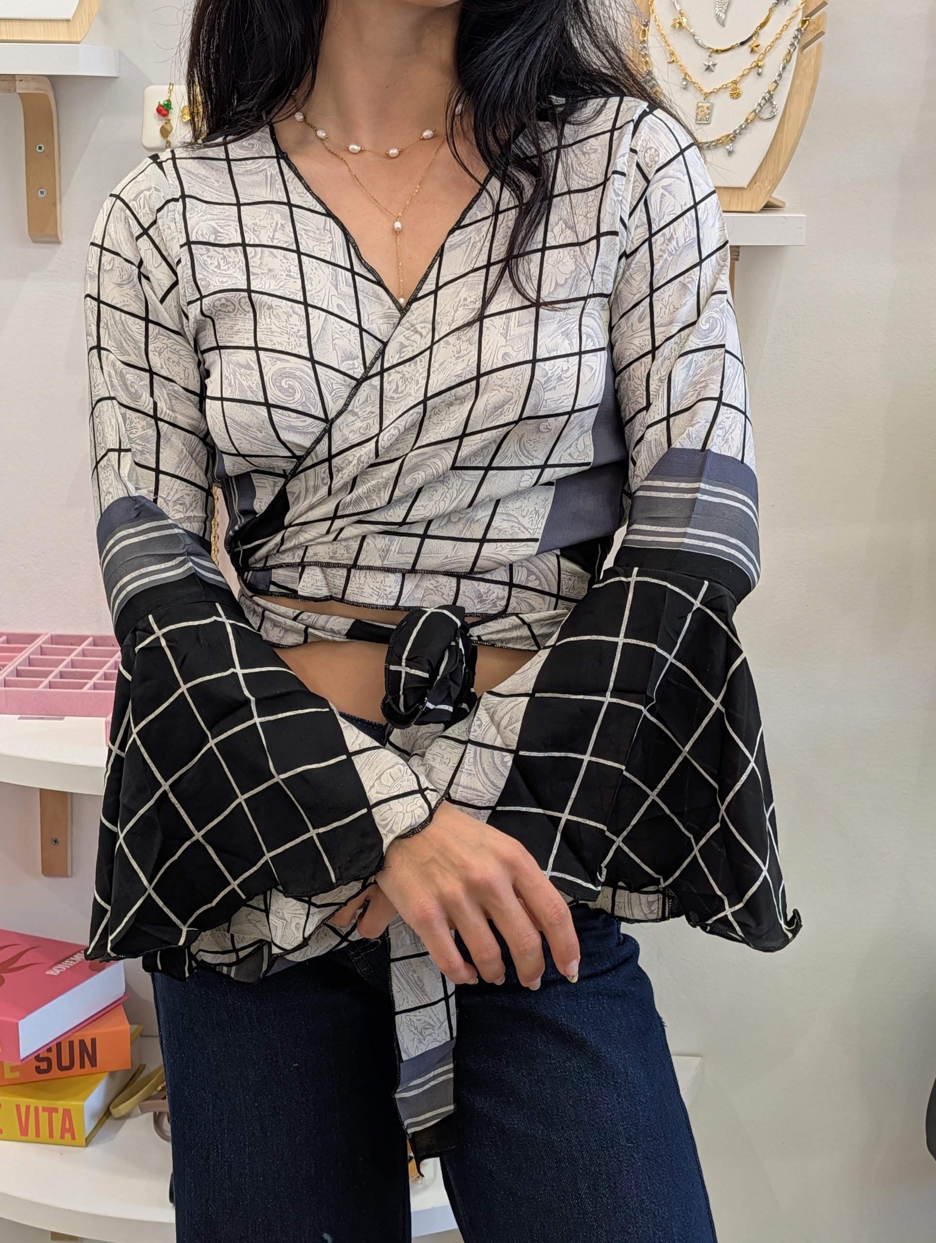 - Wrap top – κρουαζέ σχέδιο που δένει χιαστί μπροστά. Προσαρμόζεις εσύ το δέσιμο στη μέση σου για τέλεια εφαρμογή.
